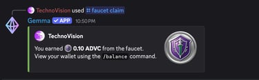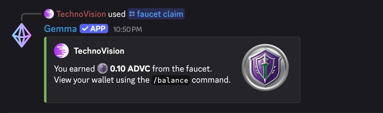 Claim free crypto every hour using a single slash command. Keep track of active faucets or donate to start your own.