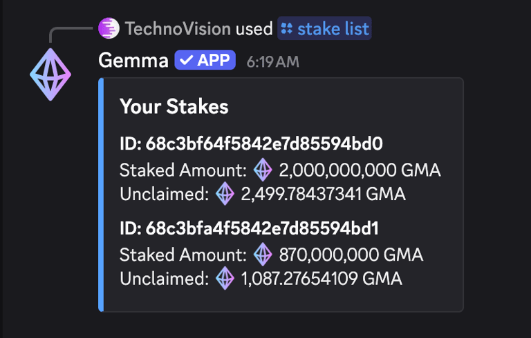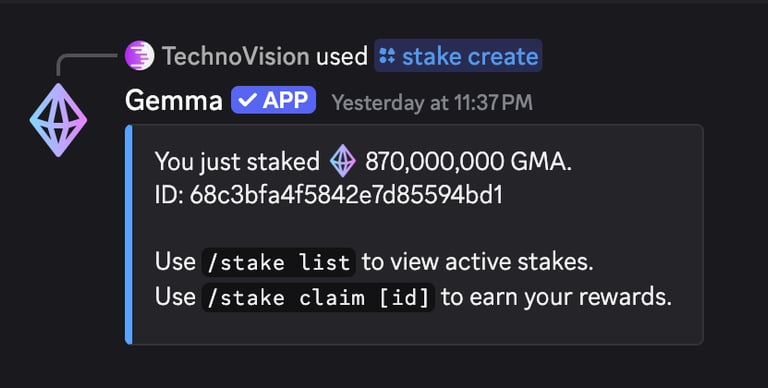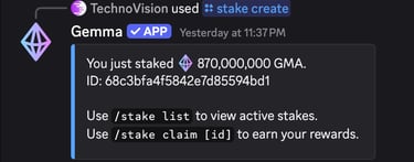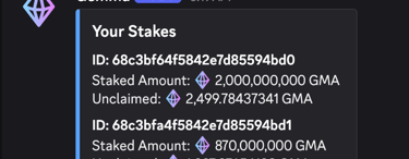 Stake GMA token on our Discord bot, allowing you to earn 10% APR passively with no minimum lock out period!