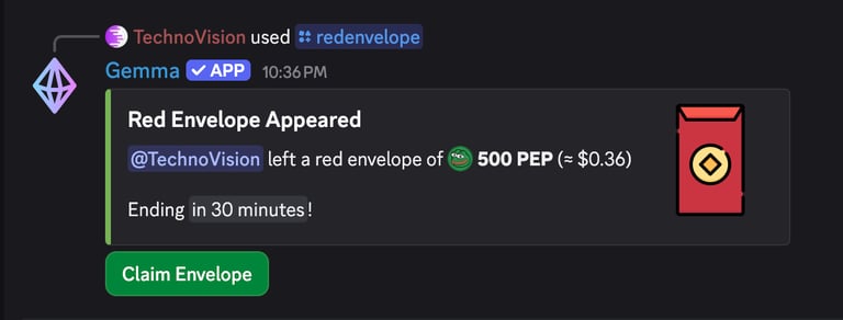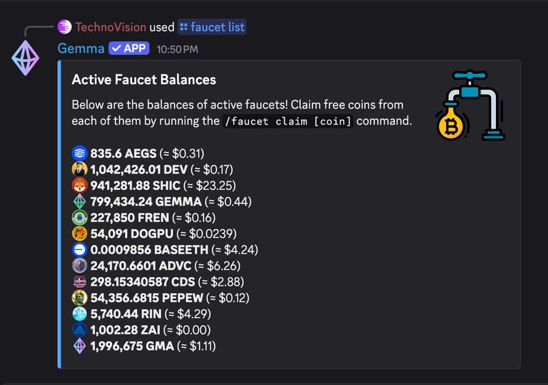 Gemma Bot is the ultimate Discord tipping platform! It allows you to manage all of your crypto via Discord, send tips, host airdrops, earn free coins, and swap them, all with low fees and no minimums!